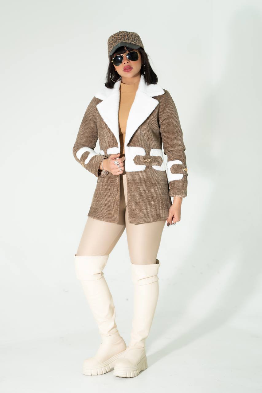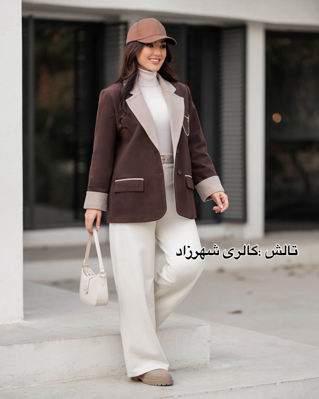 پالتو دخترونه کوتاه جنس بیسکویتی شیک