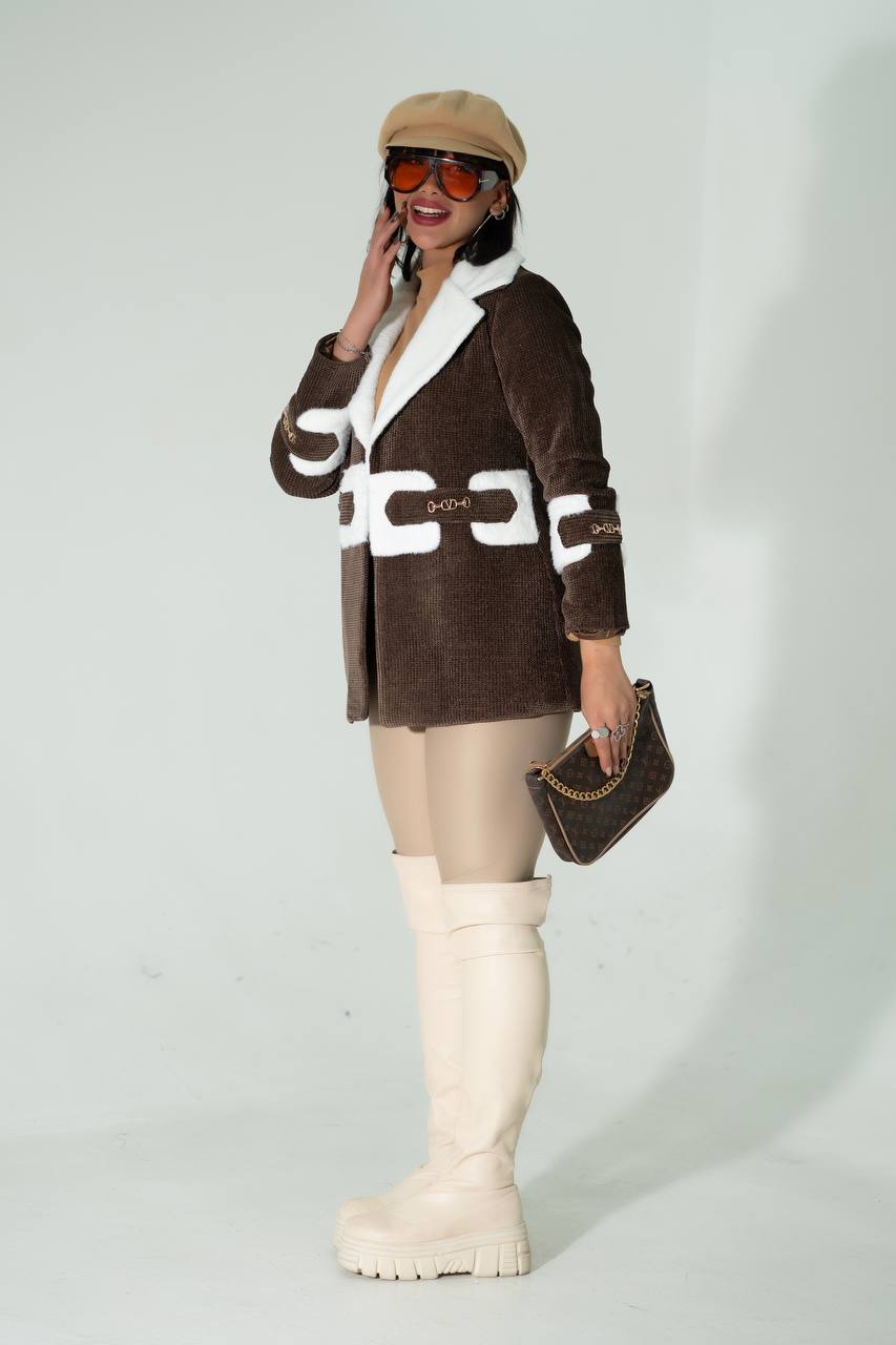 پالتو دخترونه کوتاه جنس بیسکویتی شیک